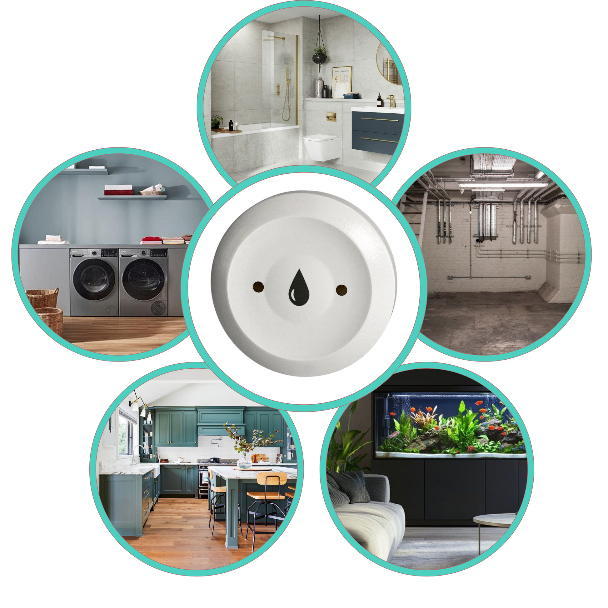 - Wykrywanie wycieku wody – natychmiastowy alarm w przypadku kontaktu z wodą.