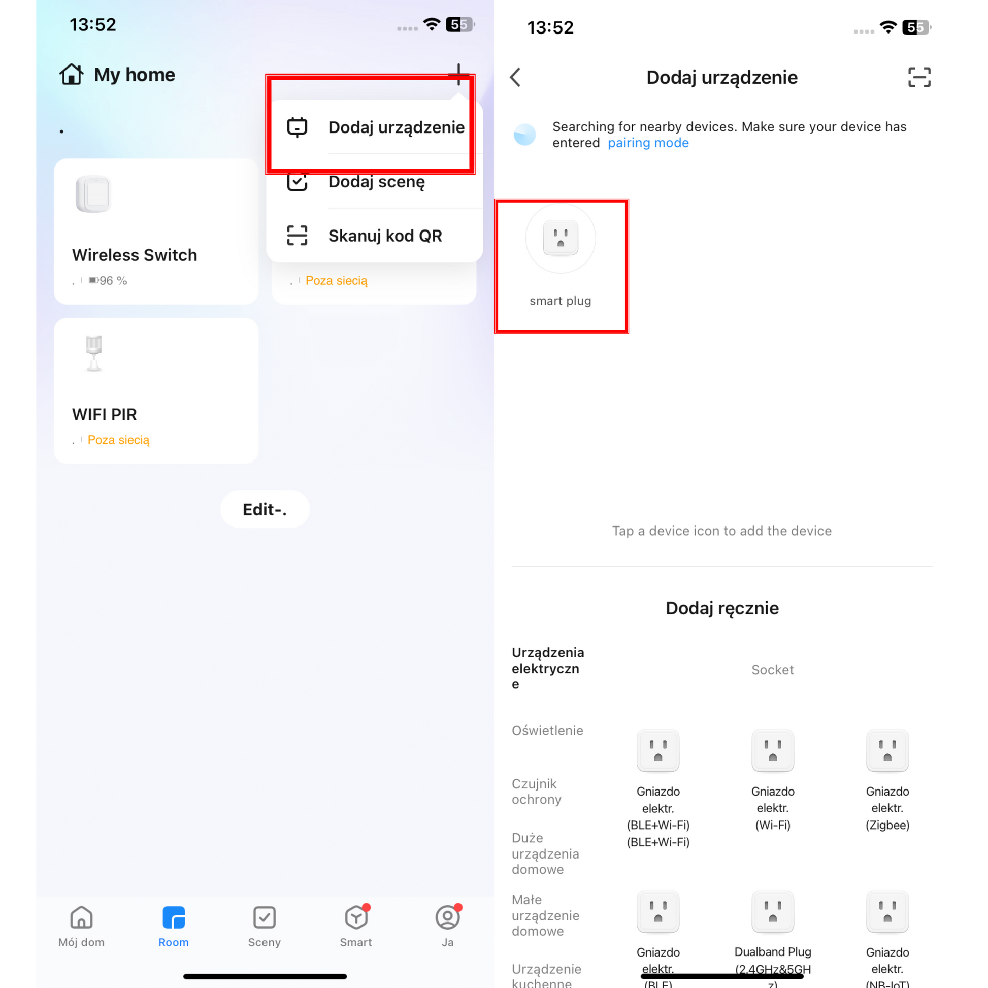 - Podłącz inteligentna wtyczka i naciśnij długo przycisk zasilania, aż wskaźnik szybko miga.