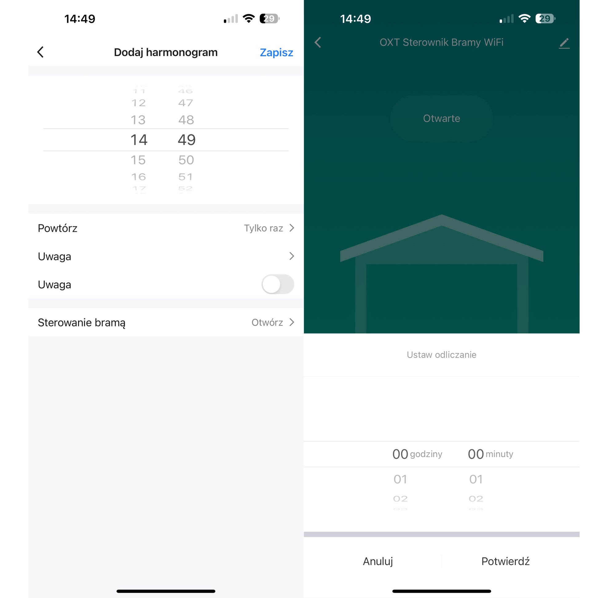 ✅Timer – ustawienie czasu do zamknięcia lub otwarcia bramy