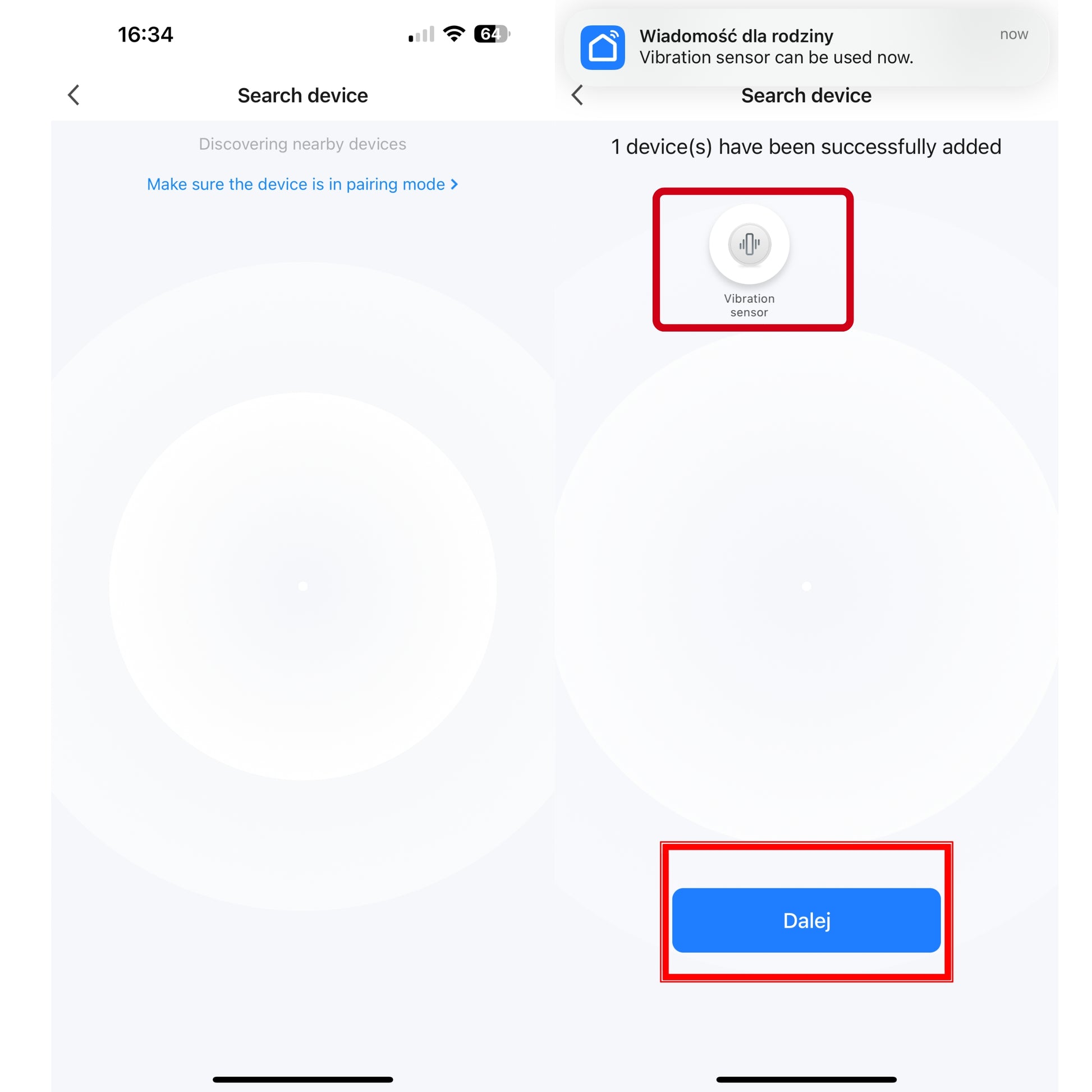 ✅ Automatyzacje – np. włączenie światła po wykryciu drgań